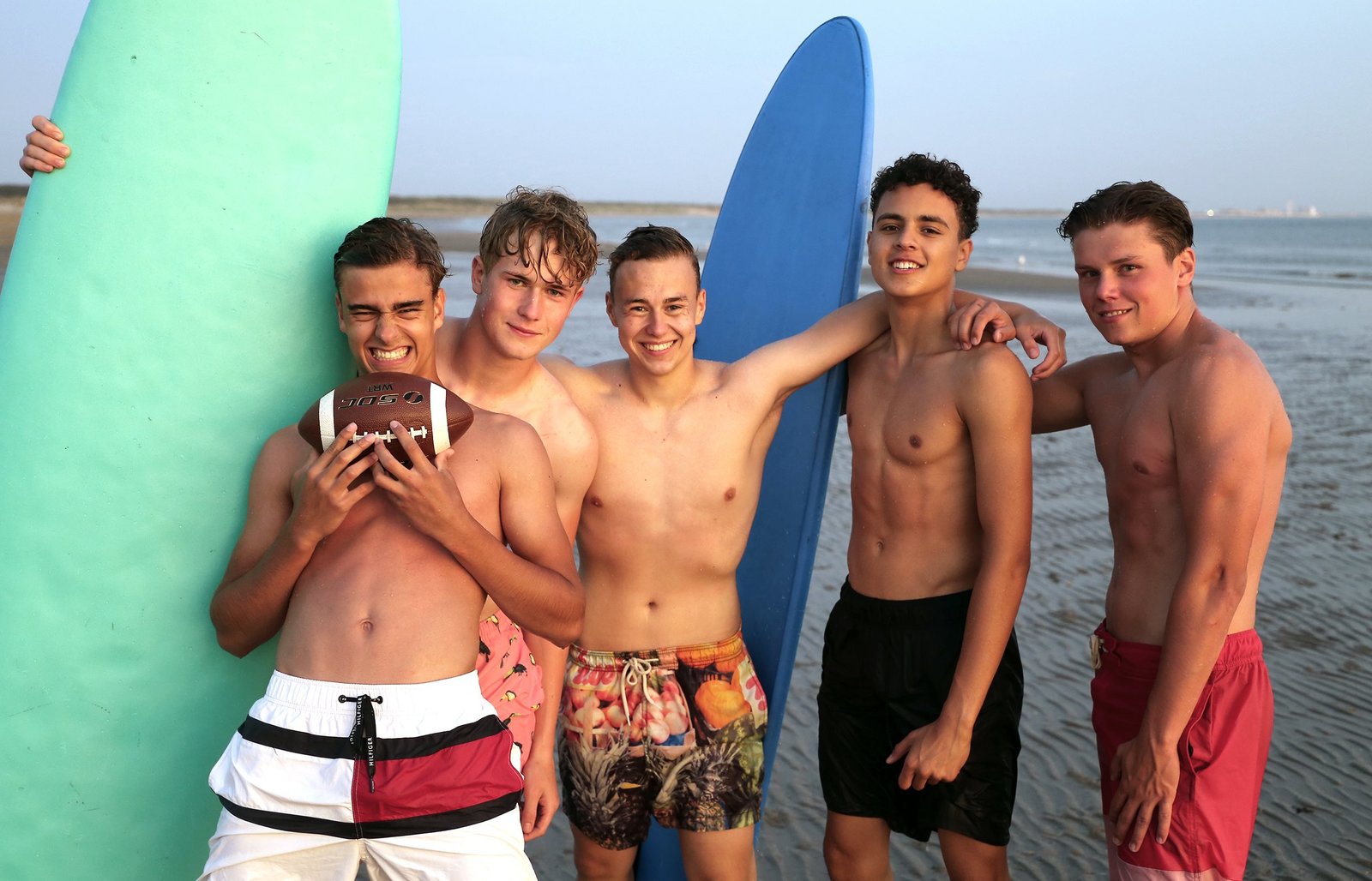 Beach-FunFootball am Strand. Luke, Mark, Alex, Ruben und Jeppe genießen ihre Zeit am Strand mit viel Sport und einigen Mädchen-Bekanntschaften.Bild: © KiKA/Wessel de Groot