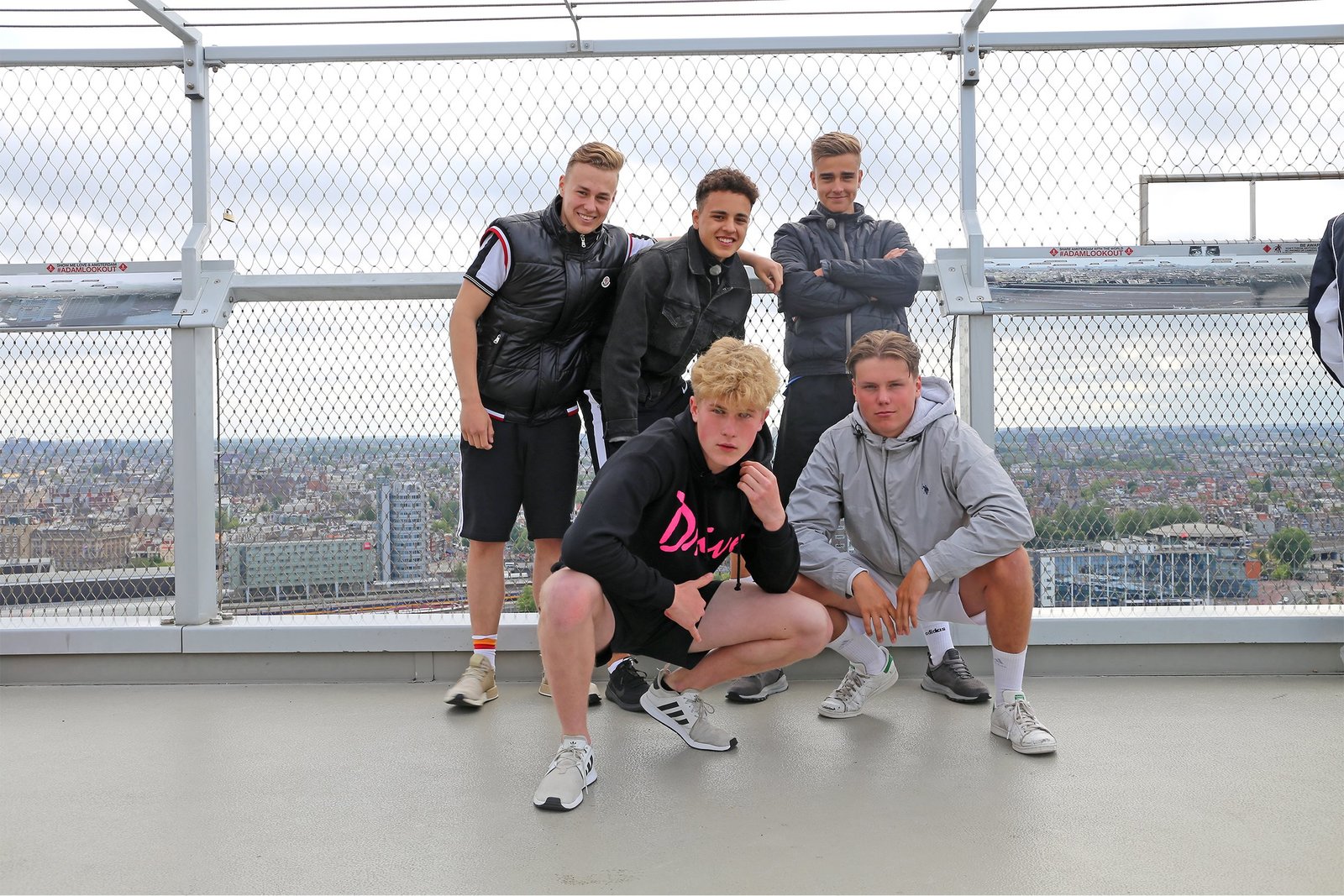 Toooor!Alex, Ruben, Mark, Luke und Jeppe beim Sightseeing in Amsterdam. In luftiger Höhe genießen sie einen einzigarten Ausblick auf die niederländische Hauptstadt.Bild: © KiKA/Wessel de Groot