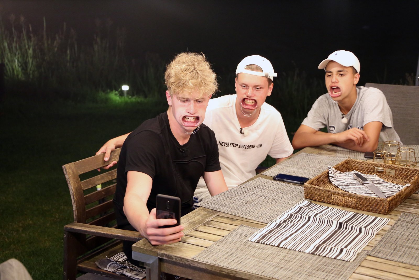 Hier stinkt's!Fast wie beim Zahnarzt nur wesentlich lustiger! Reden können Mark, Jeppe und Ruben nur schlecht mit den Mundspangen, Essen ist nahezu unmöglich. Trotzdem wird beides natürlich ausprobiert!Bild: © KiKA/Wessel de Groot
