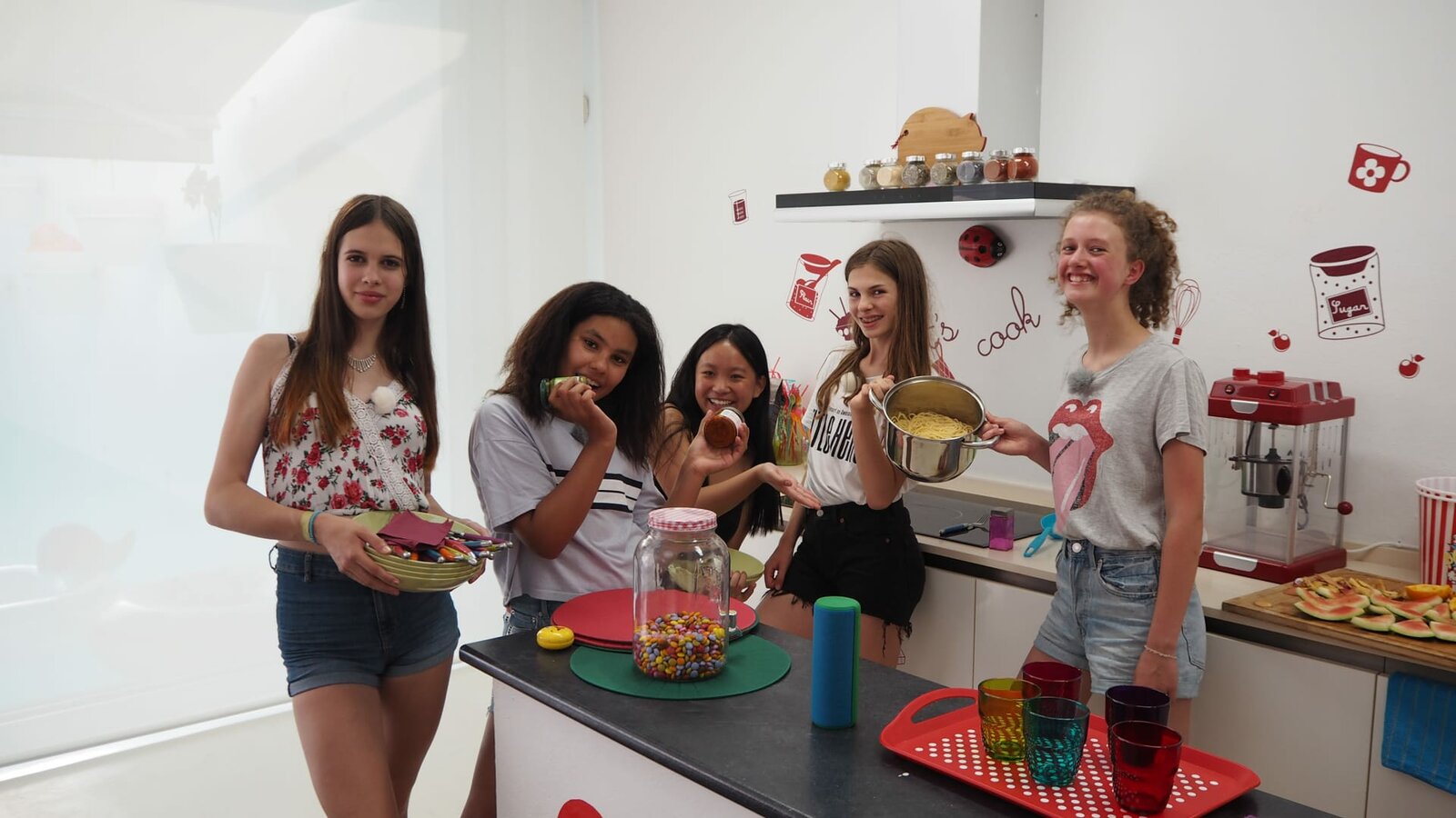 Folge 1Lisa, Chantal, Trang, Angelina und Emma (v.l.n.r.) kochen zusammen in der Küche ihrer spanischen Villa.Bild: © "Bi...