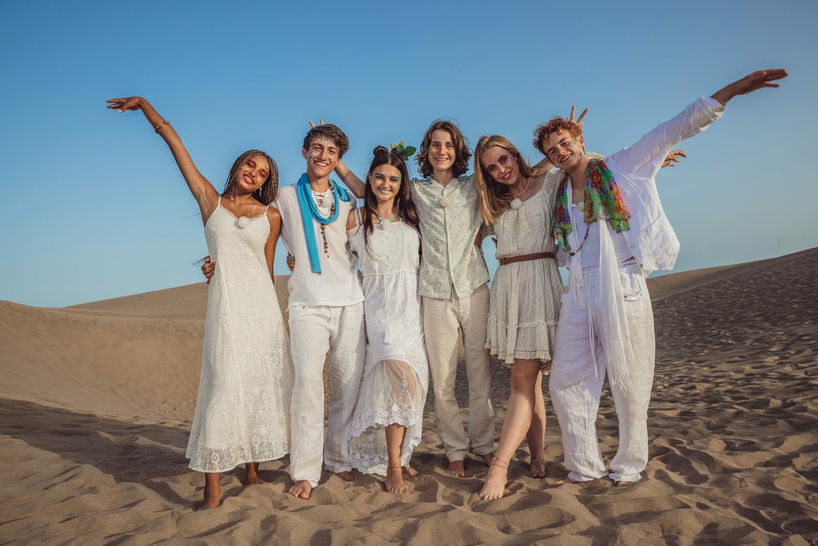 Fotomodel für einen TagNaomi, Adis, Sofia, Leo, Lia und Jasper sind besonders gestylt für ein Fotoshooting in den Dünen von Maspalomas.Bild: © ZDF/Georg Bussek
