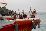Mit Höhenangst bist du lost!Bei der Mixed-WG auf Gran Canaria herrscht super Stimmung, denn die drei Mädels und Jungs sind auf dem Weg zum Parasailing.Bild: © ZDF/Georg Bussek