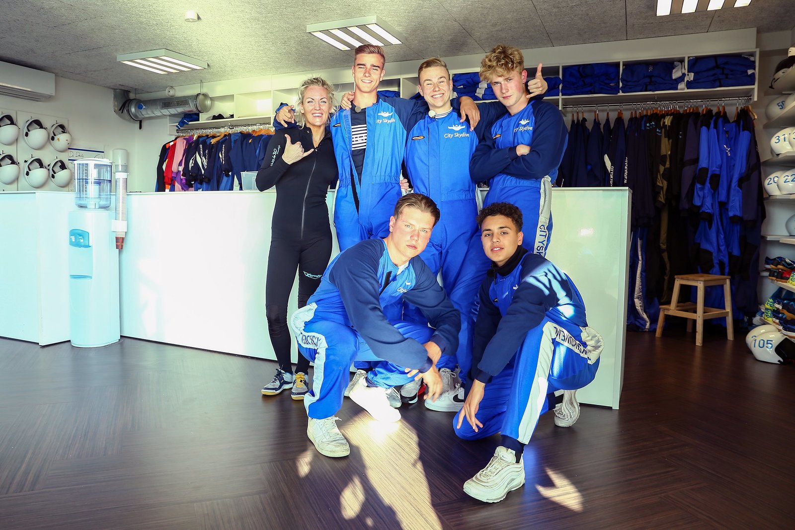 AbhebenCheck! Die Jungs sind bereit für ihren ersten Skydive-Sprung. Ein bisschen mulmig ist ihnen allerdings dabei auch.Bild: © KiKA/Wessel de Groot