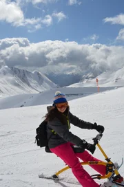 Folge 8Leona auf einem Skibob.Bild: © ZDF und Jonas Stracke