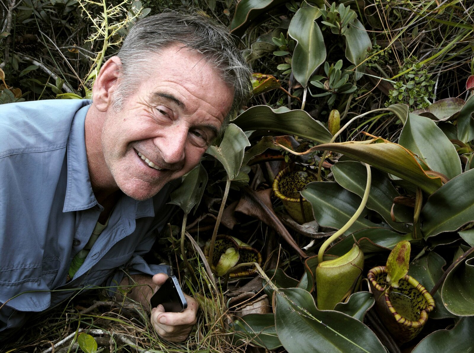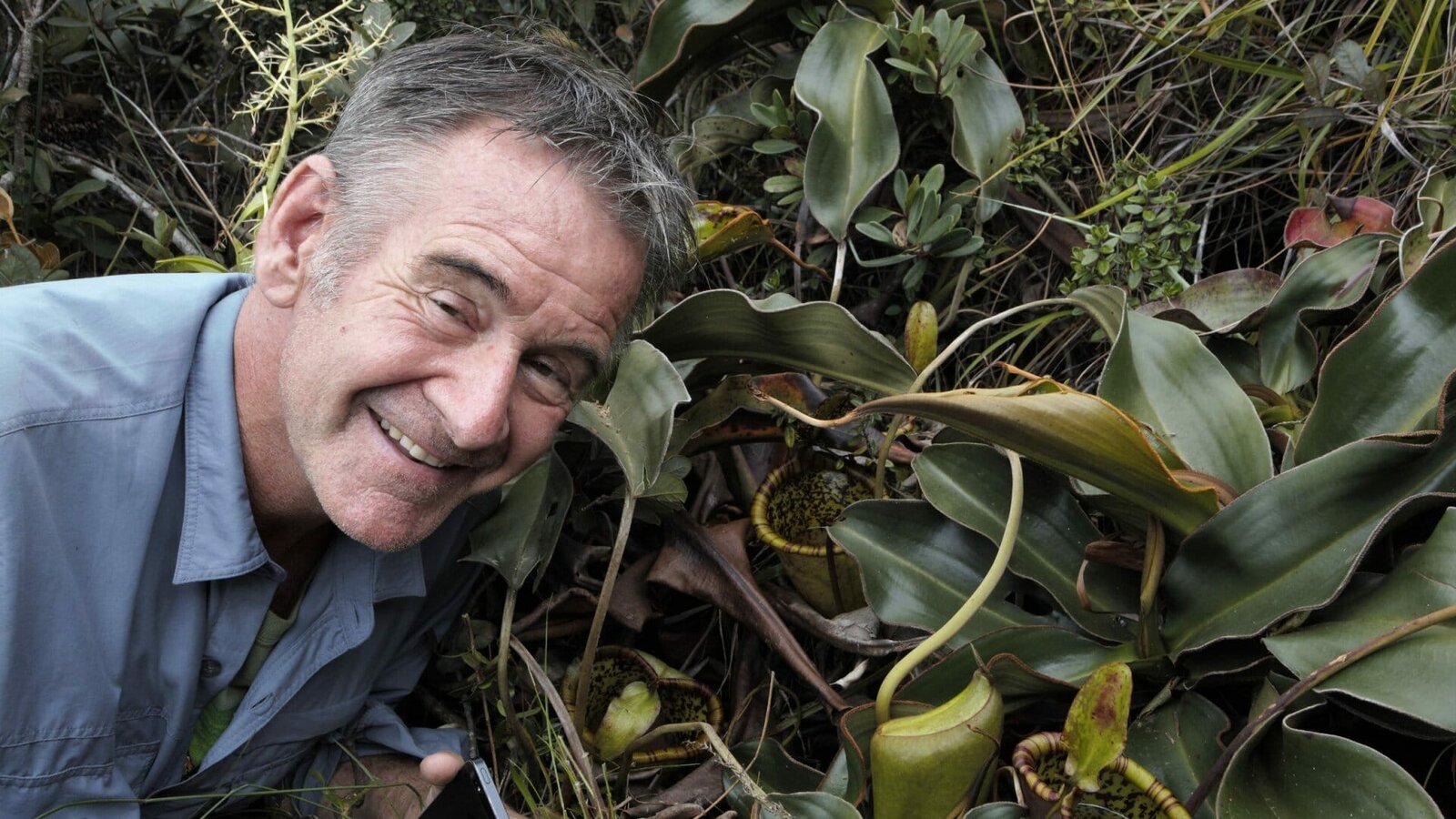 In den Wäldern von PalawanAm Mount Victoria, in über 1600 m Höhe, findet Nigel Marven eine seltene Kannenpflanze: Nepenthes attenboroughii.Bild: © ZDF und Michael Hutchinson.