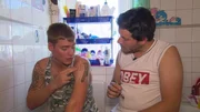 Der ganz normale Wollny-WahnsinnFlo (re.) versucht seine ersten Tattos an Peter (li.) aus.Bild: © RTL II
