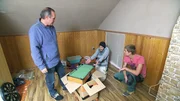 Harald zieht ein!Harald (li.) bekommt von Flo (Mitte) und Peter (re.) Unterstützung beim Umbau.Bild: © RTL Zwei