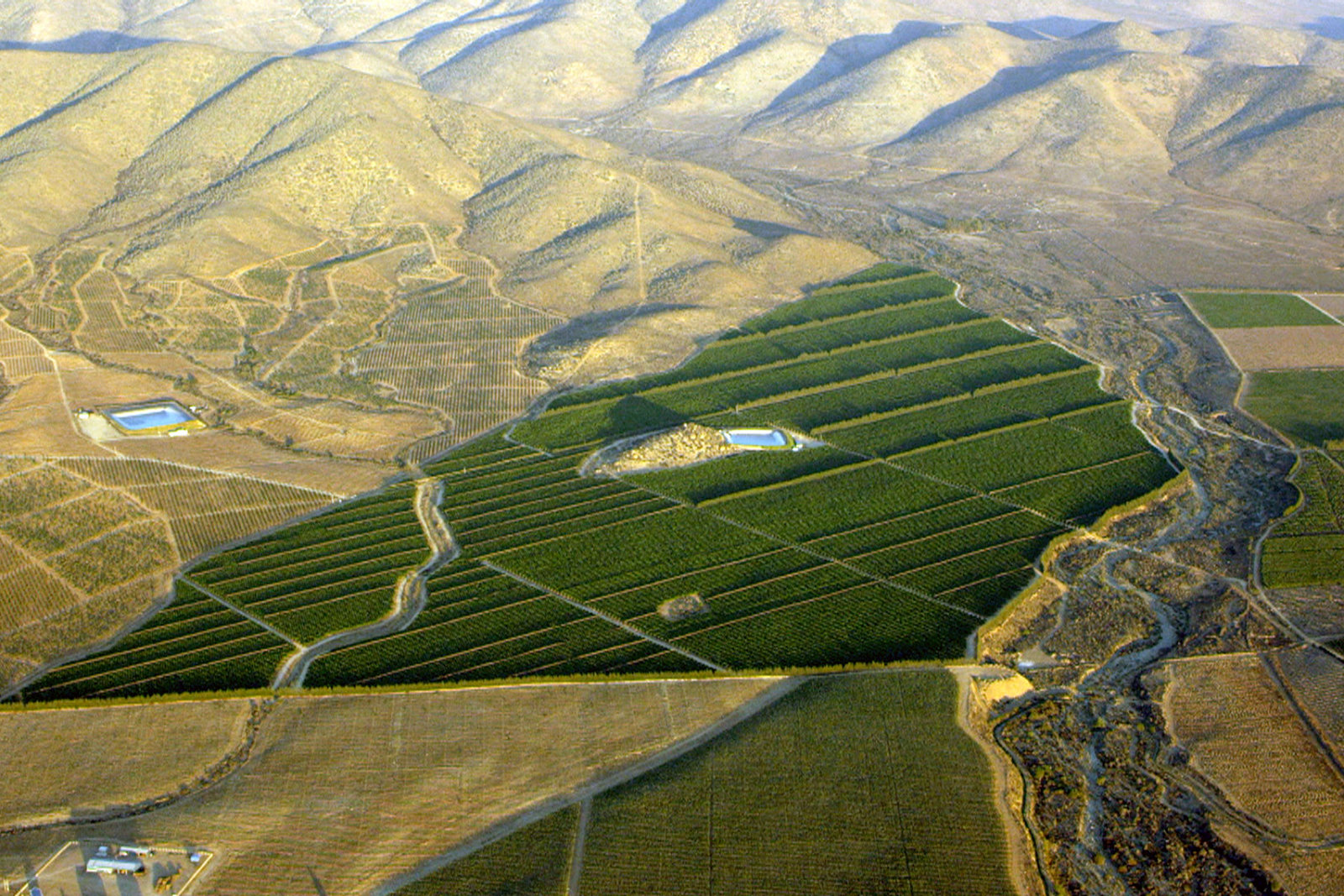 Chile: Feine Reben in den AndenLuftsicht auf ein fruchtbares Hochtal inmitten der Anden im Norden von Chile, wo seit knapp 500 Jahren Wein angebaut wirdBild: © ARTE France