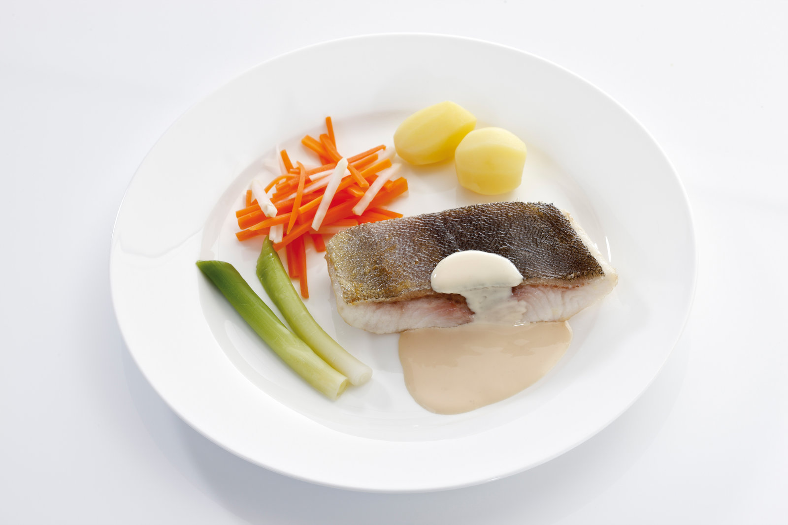 Champagne - Schätze aus KreidehöhlenCobia, fish filet, boiled potatoes, carrots, onion springs, white wine sauceBild: © depositphotos.com