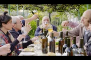 Georgien - Auf den Spuren der ersten WeinbergeSoliko (Mi.) und seine Freunde haben sich zu einer Weinprobe getroffen. Jeder hat eine Kostprobe mitgebracht, es wird eifrig verglichen und diskutiert. Alle Weine wurden im Qvevri ausgebaut und haben die dafür typische bernsteinfarbene Tönung.Bild: © ARTE France Honorarfreie Verwendung nur im Zusammenhang mit genannter Sendung und bei folgender Nennung "Bild: Sendeanstalt/Copyright". Andere Verwendungen nur nach vorheriger Absprache: ARTE-Bildreda