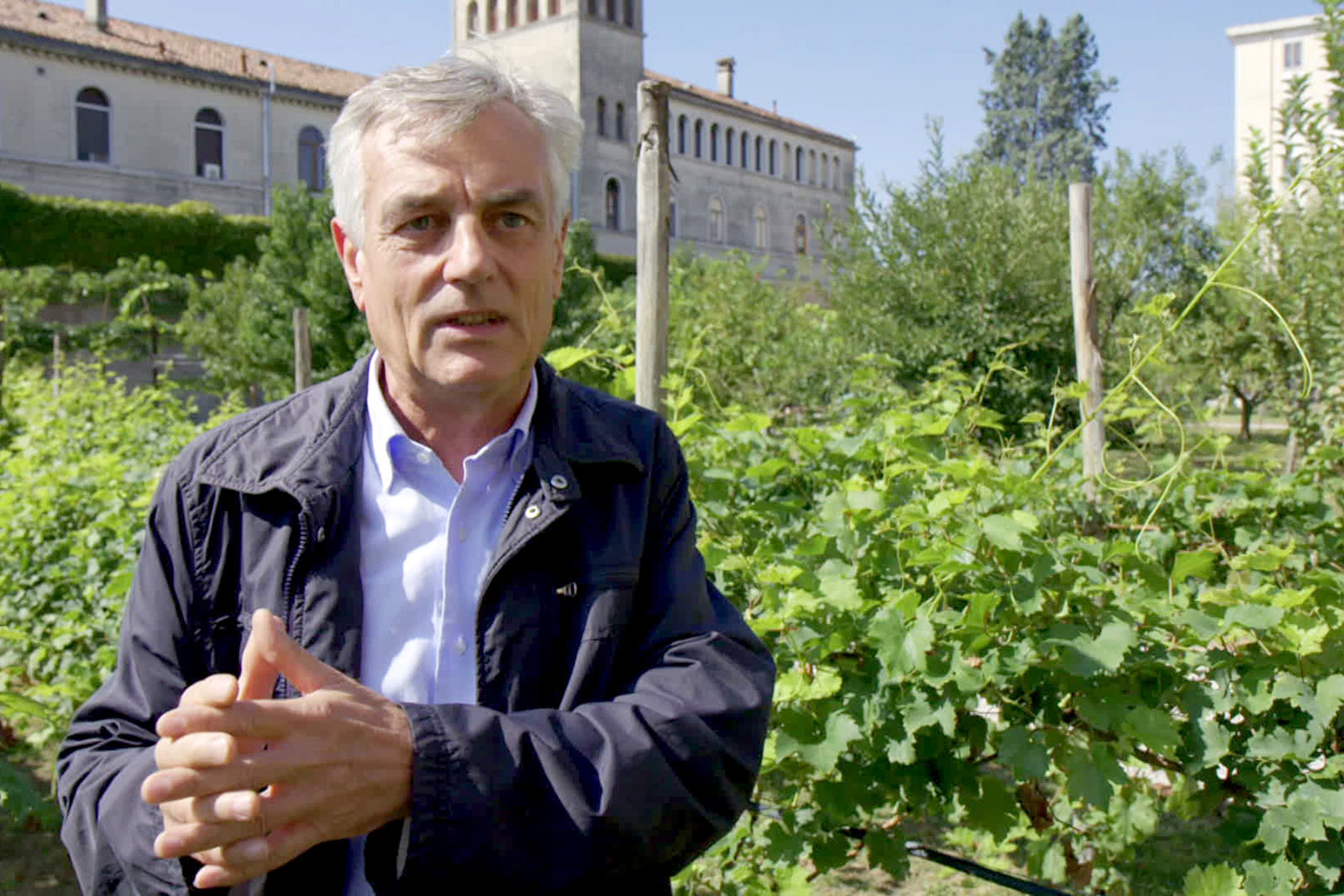 Italien - Prosecco und das Lebensgefühl des VenetoDer Önologe Carlo Favero in den Rebgärten der Scalzi-Kirche in VenedigBild: © ARTE France Honorarfreie Verwendung nur im Zusammenhang mit genannter Sendung und bei folgender Nennung "Bild: Sendeanstalt/Copyright". Andere Verwendungen nur nach vorheriger Absprache: ARTE-Bildreda