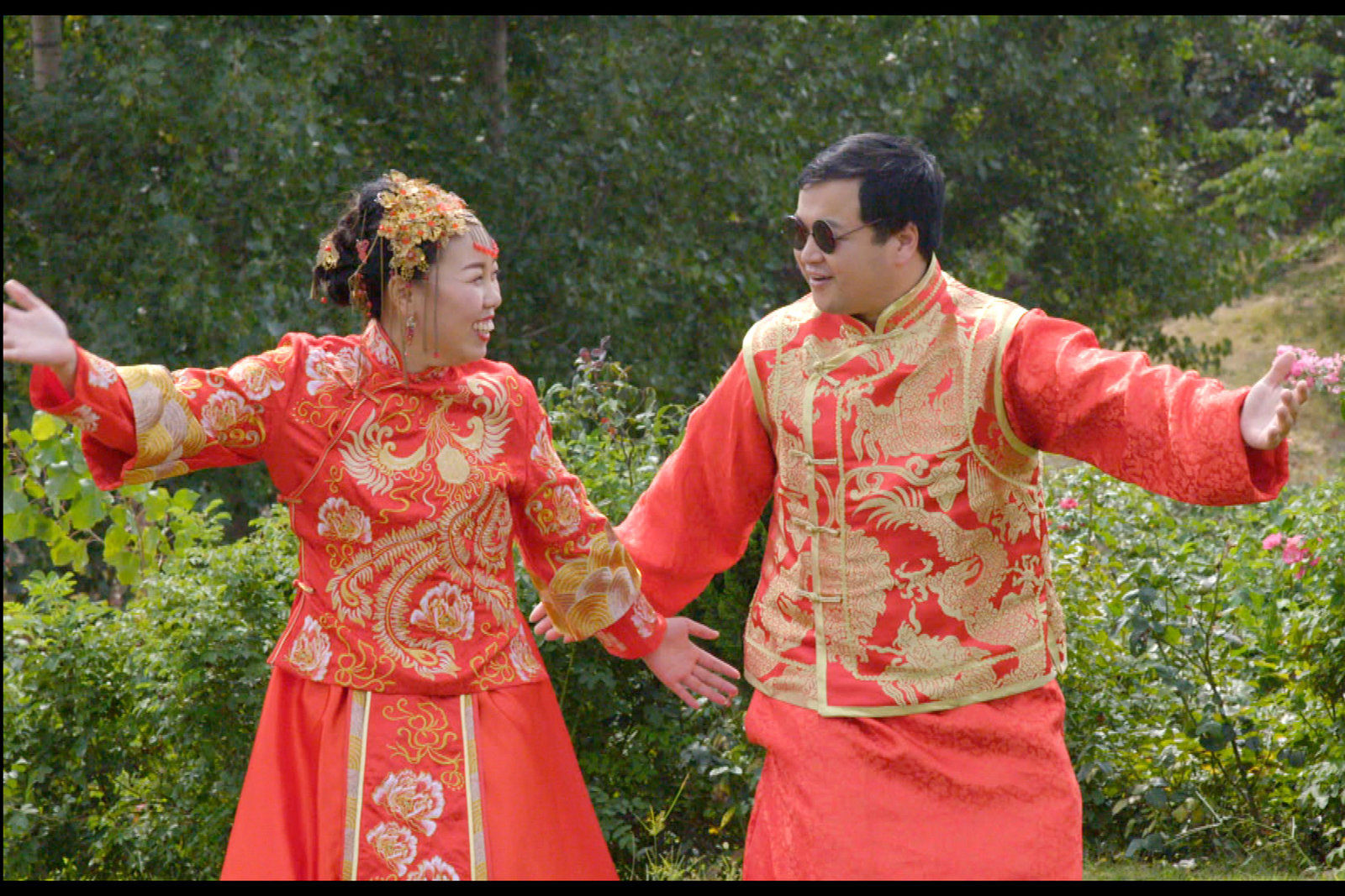 China - Die Revolution der WeinbergeEin frisch getrautes Paar nutzt die Kulisse eines Weinguts in der Provinz Shandong als dekorativen Hintergrund für Hochzeitsfotos.Bild: © ARTE France