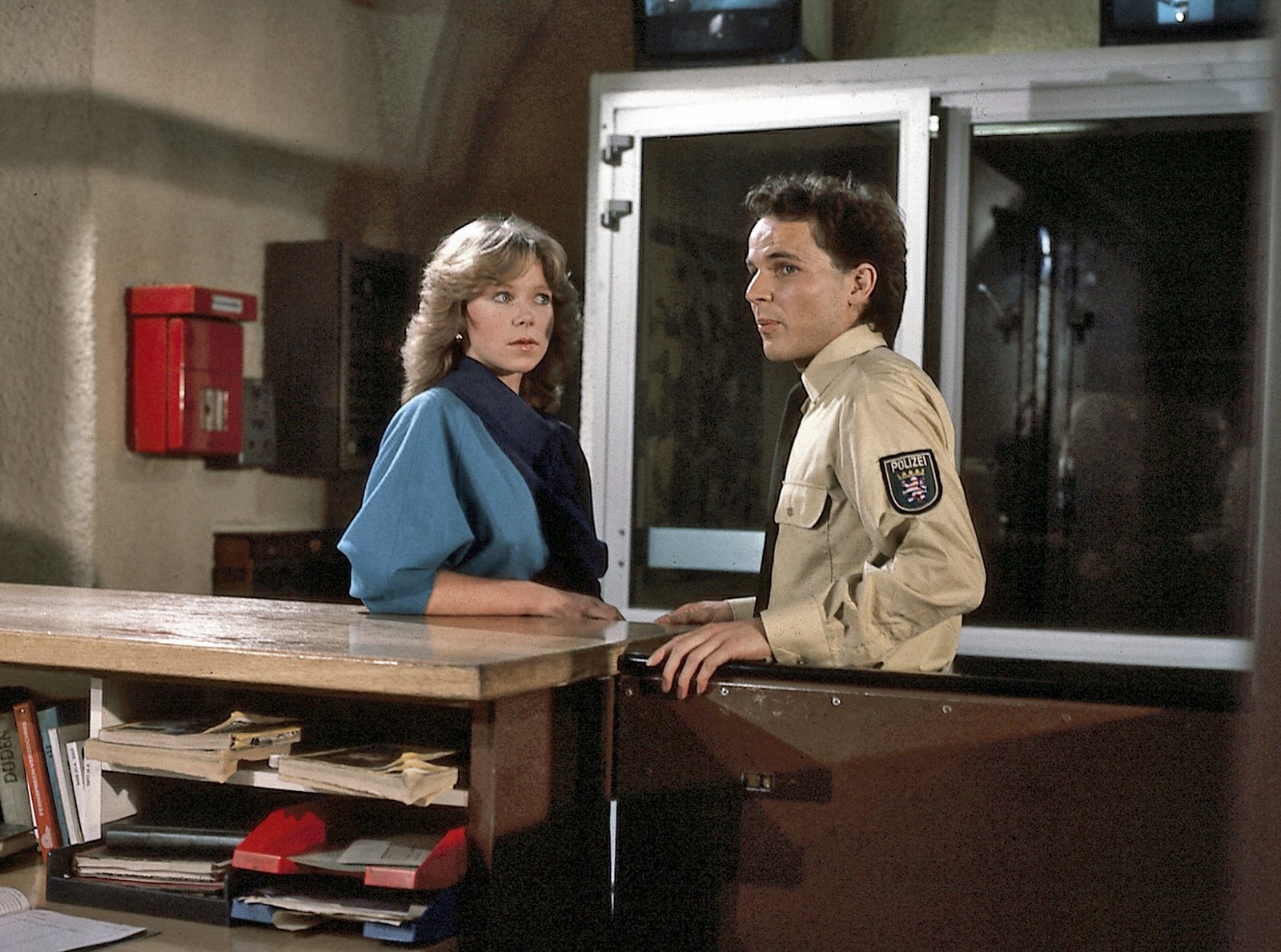Flucht nach vornhr-fernsehen DIESE DROMBUSCHS (9), Flucht nach vorne, Zwölfteilige Fernsehserie, Deutschland 1982 - 1983, am Montag (14.07.14) um 22:35 Uhr. Chris (Mick Werup) hat bei einer Ralley Tina (Marion Kracht) kennengelernt, die ihn auf dem Revier besucht.Bild: © HR/ZDF und Gyula Trebitsch Prod. GmbH