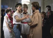Das provozierte Verhängnishr-fernsehen DIESE DROMBUSCHS (10), Das provozierte Verhängnis, Zwölfteilige Fernsehserie, Deutschland 1982 - 1983, am Montag (14.07.14) um 22:35 Uhr. Auf einer Faschingsfete sucht Vera (Witta Pohl, vorne rechts) ihren Sohn Chris (Mick Werup, 2.v.l.), um ihm mitzuteilen, dass sein Vater auf der Intensivstation liegt.Bild: © HR/ZDF und Gyula Trebitsch Prod. GmbH