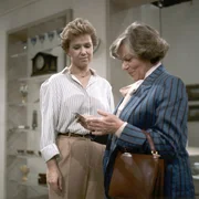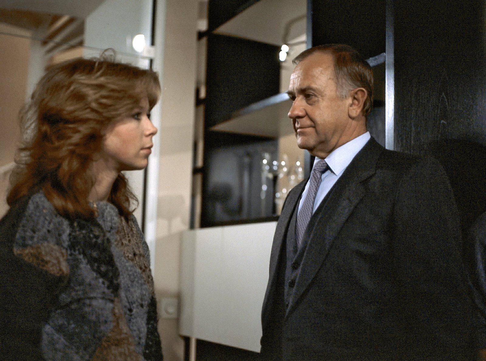 Entscheidungenhr-fernsehen DIESE DROMBUSCHS (6), Entscheidungen, Zwölfteilige Fernsehserie, Deutschland 1982 - 1983, am Montag (16.06.14) um 20:15 Uhr. Siegfried Drombusch (Hans-Peter Korff) schlägt seiner arbeitslosen Tochter (Sabine Kaack) vor, in seinem Antiquitätengeschäft auszuhelfen, doch sie lehnt ab.Bild: © HR/ZDF und Gyula Trebitsch Prod. GmbH