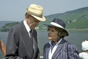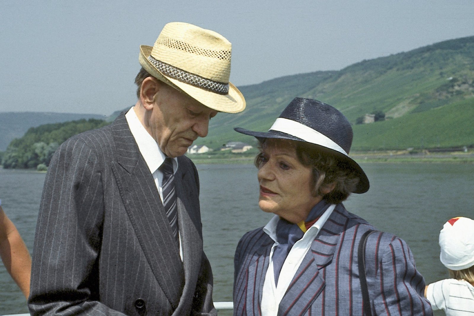 Entscheidungenhr-fernsehen DIESE DROMBUSCHS (6), Entscheidungen, Zwölfteilige Fernsehserie, Deutschland 1982 - 1983, am Montag (16.06.14) um 22:35 Uhr. Oma Drombusch (Grete Wurm) und Herr Diehl (Hannes Messemer) kommen sich bei einer Rheinfahrt näher.Bild: © HR/ZDF und Gyula Trebitsch Prod. GmbH