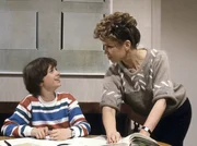 Spiel mit dem Feuerhr-fernsehen DIESE DROMBUSCHS (4), Spiel mit dem Feuer, Zwölfteilige Fernsehserie, Deutschland 1982 - 1983, am Montag (26.05.14) um 20:15 Uhr. Die schlechten Noten von Sohn Thomi (Eike Hagen Schweikhardt) machen seiner Mutter (Witta Pohl) Sorgen.Bild: © HR/ZDF und Gyula Trebitsch Prod. GmbH