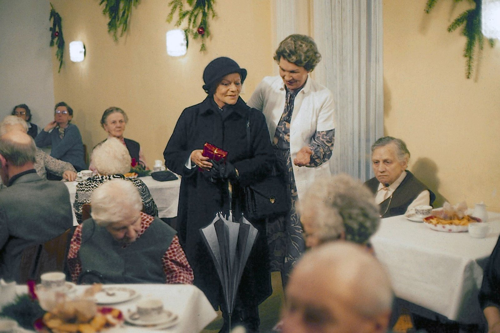 Alle Jahre wiederhr-fernsehen DIESE DROMBUSCHS (1), Alle Jahre wieder, Zwölfteilige Fernsehserie, Deutschland 1982 - 1983, am Montag (28.04.14) um 20:15 Uhr. Oma Drombusch (Grete Wurm, stehend links), will am Heiligabend eine Bekannte im Altersheim besuchen.Bild: © HR/ZDF und Gyula Trebitsch Prod. GmbH