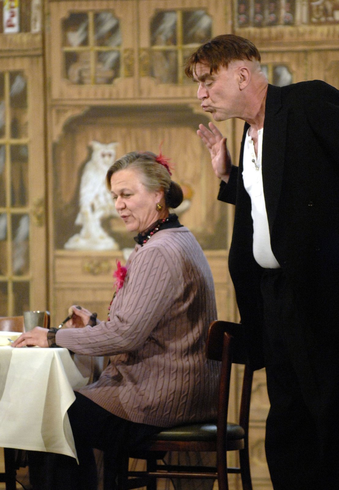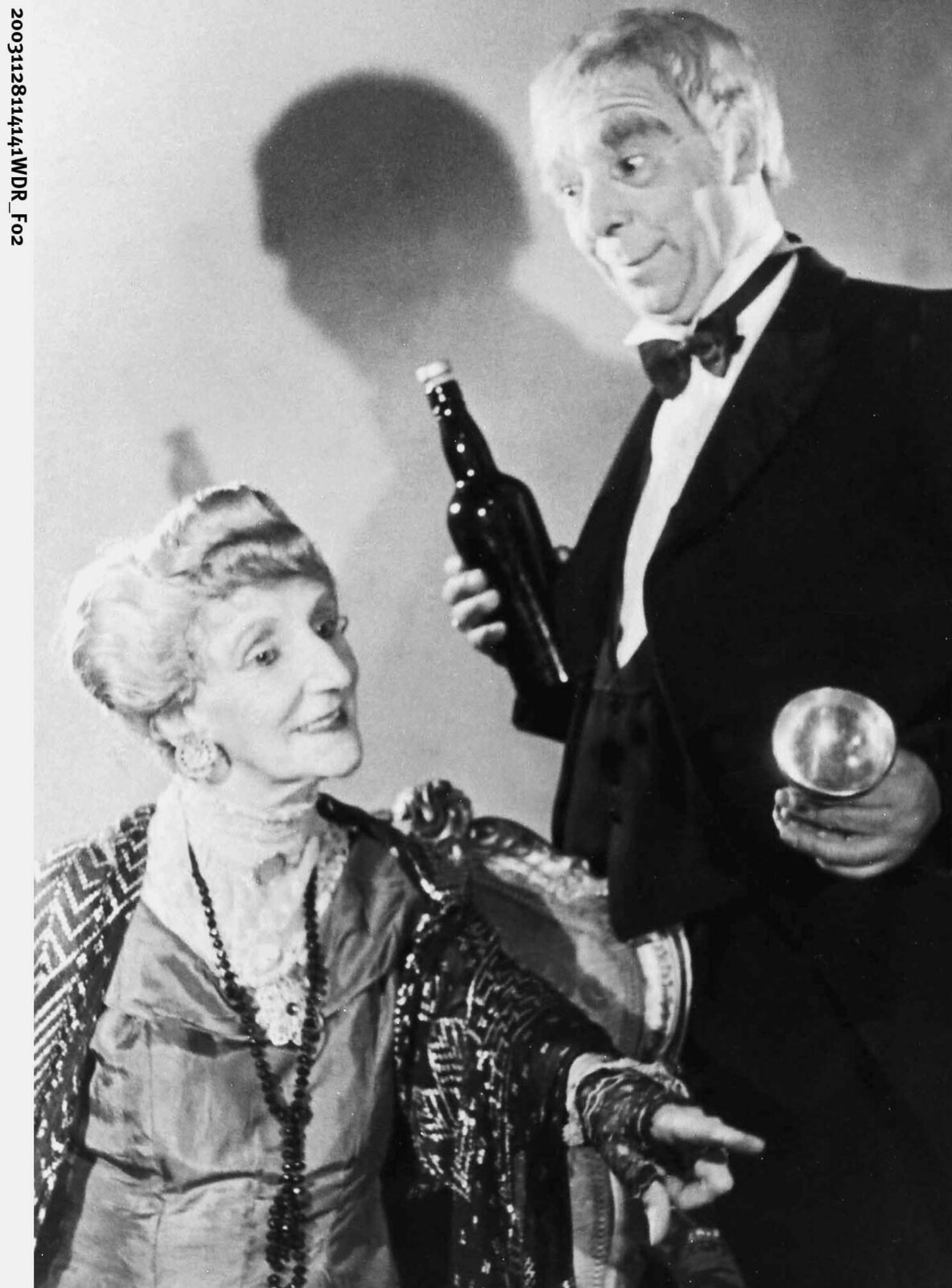 Dinner vor Wan(ne)WDR Fernsehen DINNER VOR WAN(NE), am Samstag (31.12.11) um 23:25 Uhr. Graupensuppe mit Kirschlikör: Butler Jakob (Thomas Rech) seviert Omma Sofie (Silke Volkner) ein schmackhaftes Vier-Gänge-Menü.Bild: © WDR/Fotoagentur Ruhr/B. Engel