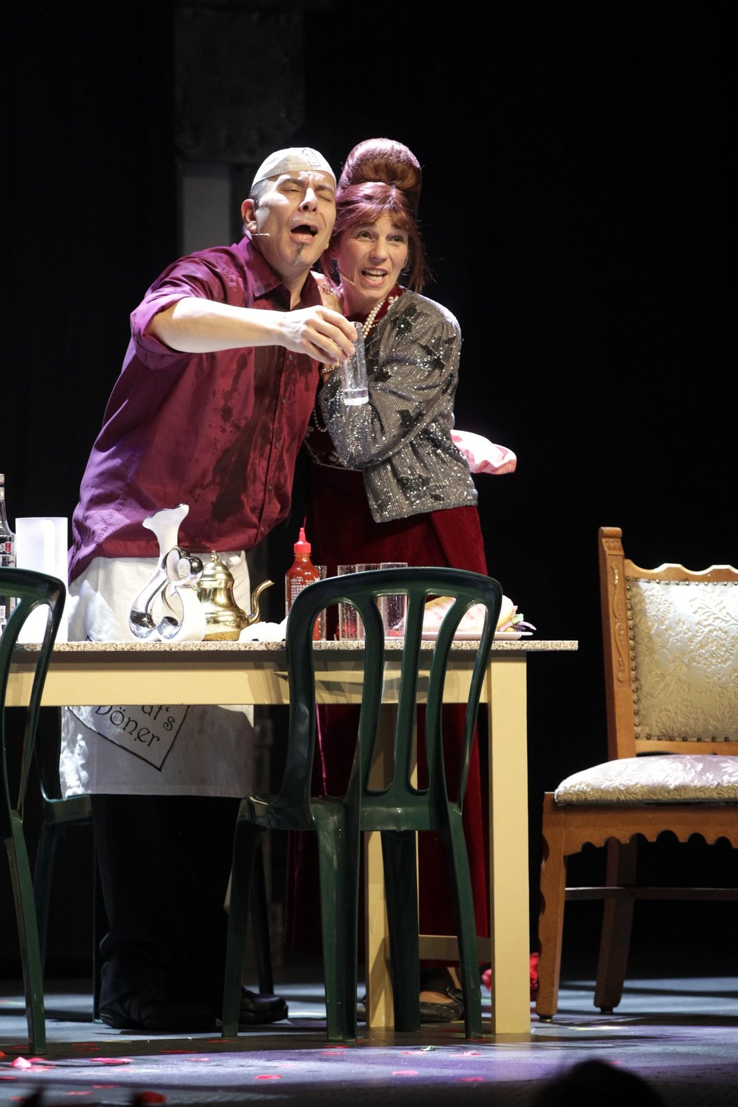 Döner for oneStück "Döner for one" mit Martina Klinke und Ozan Akhan sowie das Ensemble in der türkischen Version von "Dinner for one".Bild: © WDR/Thomas Brill