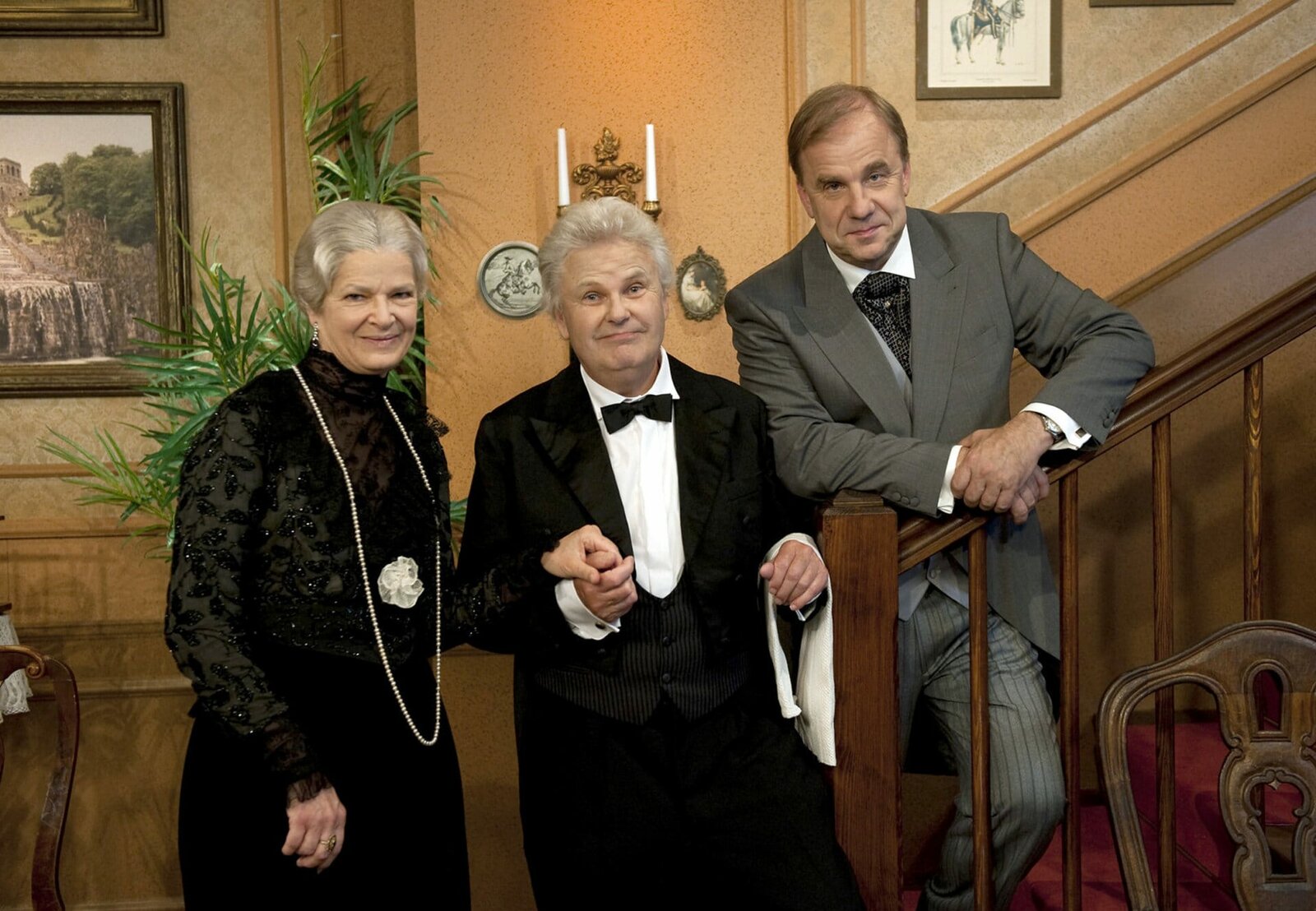 Nordhessische VersionKarl Garff (Butler "Schorsche"), Eva-Maria Keller (Miss Sophie) und Sprecher Hubertus Meyer-Burckhardt.Bild: © HR/Ben Knabe