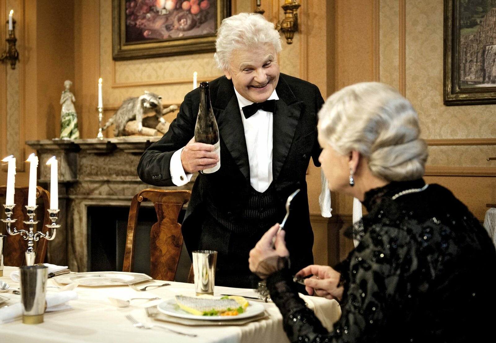 Der 90. Geburtstag oder Dinner for OneMDR Fernsehen JAHRE DINNER FOR ONE, am Montag (31.12.12) um 19:00 Uhr. Turbulent geht es zu bei dem ungewöhnlichen Geburtstagsdinner von Mrs Sophie (May Warden) und ihrem Butler James (Freddie Frinton).Bild: © MDR/Telepool Zürich