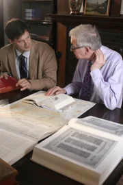 Description: Professor Colin Humphries and Professor Peter Williams discuss the route of the Exodus at Tyndale House, Cambridge, UK. Copyright Holder: © DCLBild: © Discovery Communications, Inc. For Show Promotion Only