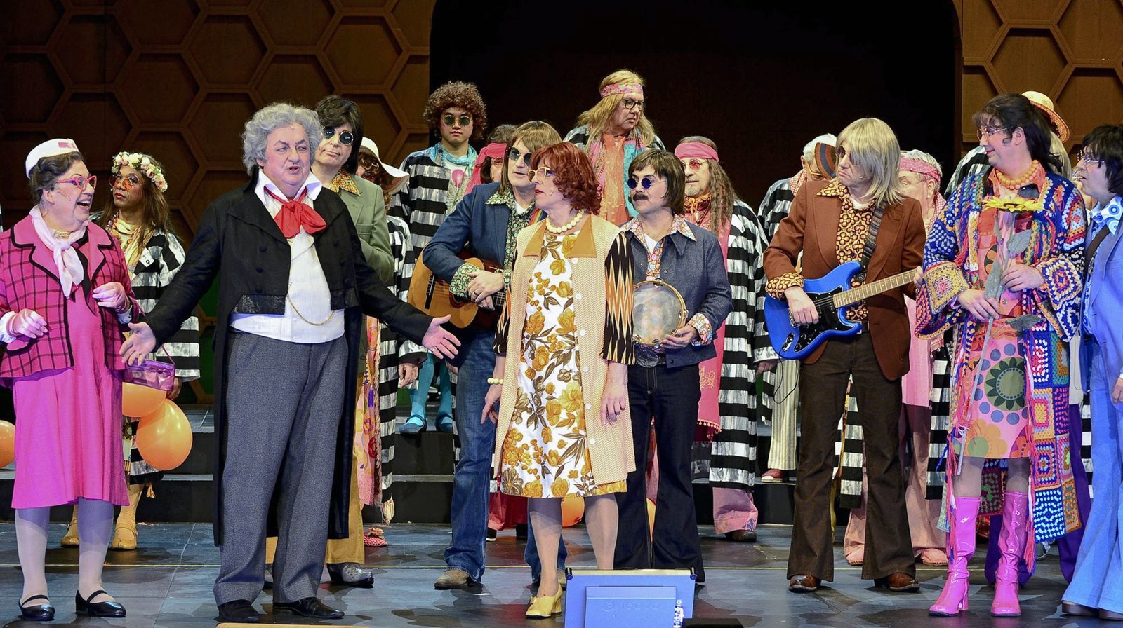 Fidelio am RhingDas Jahr 2020 steht ganz im Zeichen des 250. Geburtstages Ludwig van Beethovens. Auch »Cäcilia Wolkenburg« widmet ihr Divertissementchen dem weltberühmten Komponisten und seiner Freiheitsidee. In »Fidelio am Rhing« erlaubt sich Regisseur und Autor Lajos Wenzel einen besonderen Kunstgriff, indem er Beethoven in den 70er Jahren des 20. Jahrhunderts in Köln auferstehen lässt.Bild: © WDR/Kölner Männer-Gesang-Verein
