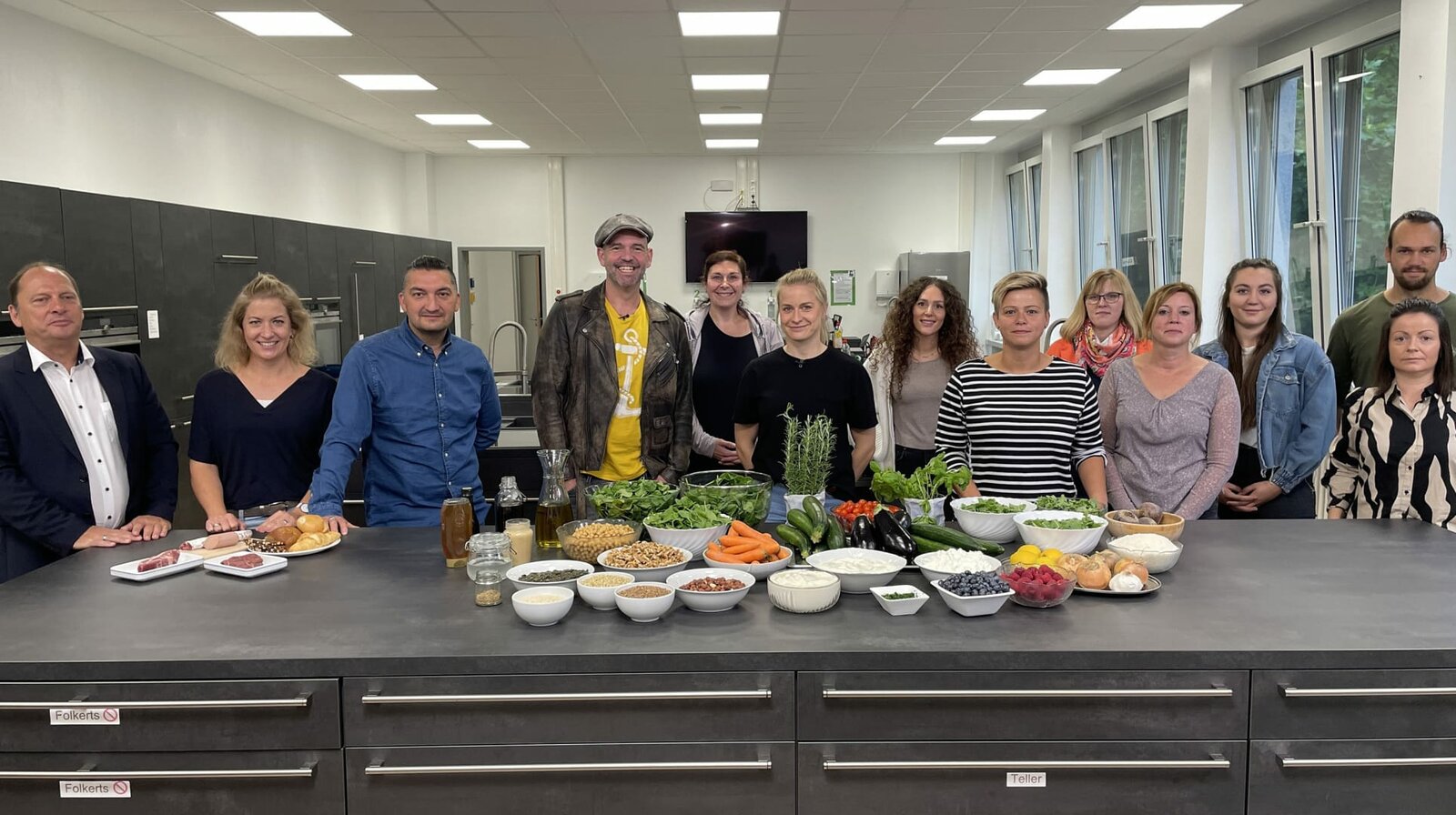 Die Lehrer-Challenge in Hamm (2). Gesund und gleichzeitig lecker? Wie das geht, zeigen Ernährungsexpertin Dr. Wiebke-Maria Schlusemann (6.v.r.) und Doc Esser (4.v.l.) einer elfköpfigen Lehrertruppe aus Hamm.Bild: © WDR/solis TV / WDR Kommunikation/Redaktion Bild
