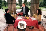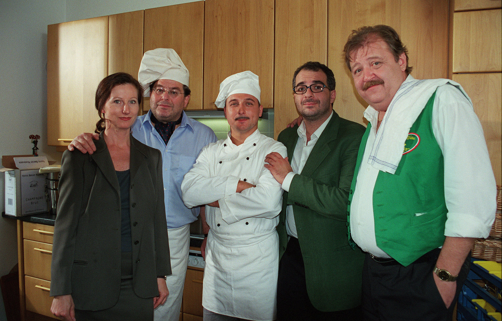 Die Neue"Dolce Vita & Co.", "Die Neue." Wie sich herausstellt, hat Lea Schwarz vor, länger in Wien zu bleiben. Über die Vermittlung von Doktor Bauer bekommt Lea einen Job im Dolce Vita. Nicht nur dort erregt die attraktive Frau Aufsehen unter den anwesenden Männern: Ein Gast - zugleich Kandidat einer stramm anständigen Partei - besteht darauf, dass Lea zu ihm nach Hause kommt, um bei seiner Geburtstagsfeier zu servieren. Währenddessen gerät Marianne in ihrem Job wegen der Intrige ihres Ex-Lovers Christian in immer größere Schwierigkeiten.Im Bild (v.li.): Gunther Gillian (Ötschi), Reinhard Nowak (Burli), Gudrun Tielsch (Beate Amsdorf).Bild: © ORF 2