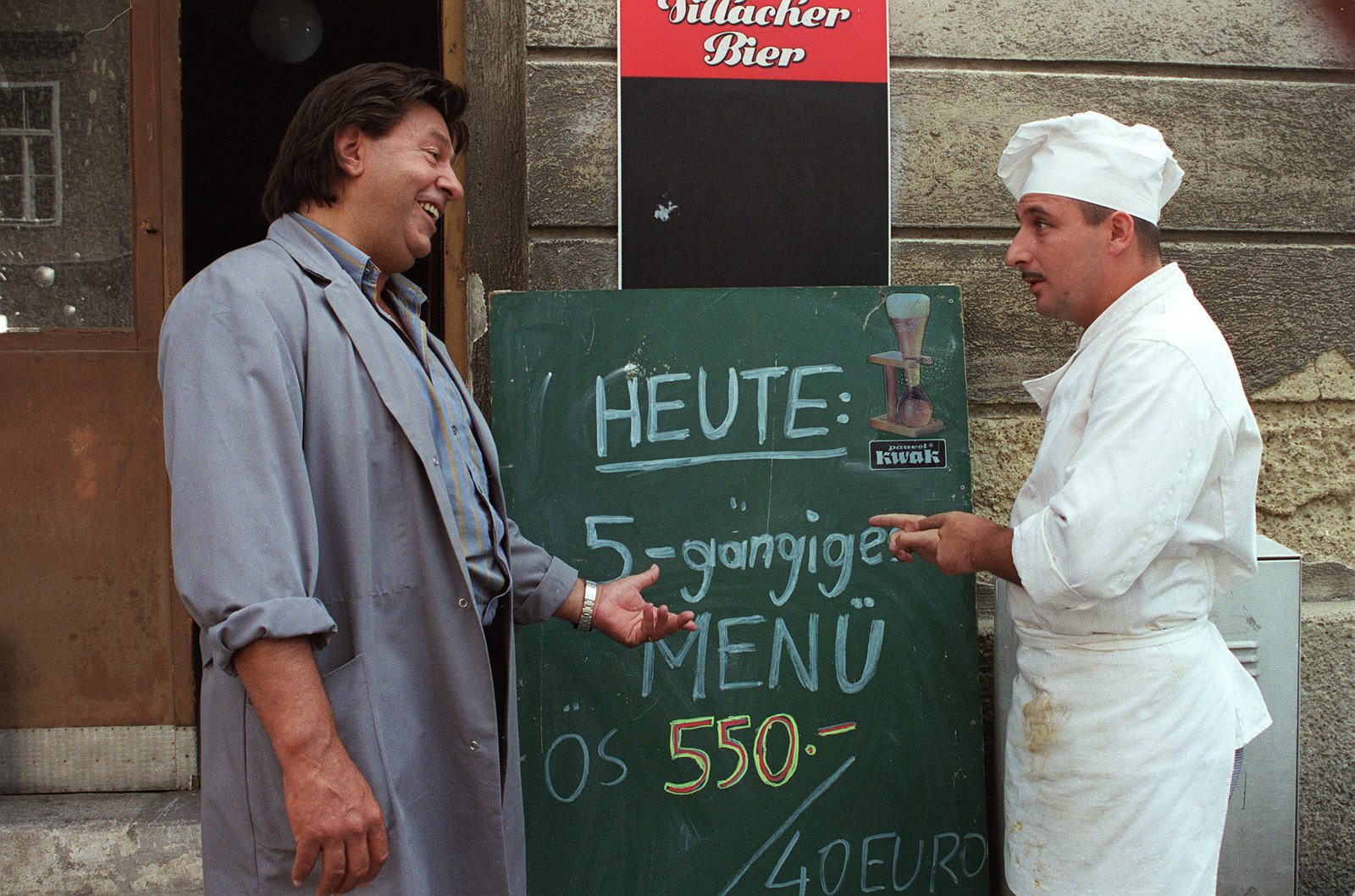 Die goldene Hochzeit"Dolce Vita & Co.", "Die goldene Hochzeit." Mario Hubinger, Familienvater und Hausmann in der Sinnkrise, beschließt, etwas aus seinem Leben zu machen. Er will im Lokal seines Vaters Hans einsteigen und aus dem heruntergekommenen Eckbeisl wieder ein gefragtes Restaurant machen. Doch Hans will das "Dolce Vita" nur mehr verkaufen und sich zur Ruhe setzen. Mario muss sich also schleunigst etwas einfallen lassen, um seinen Plan doch noch verwirklichen zu können. Das Festessen anlässlich einer goldenen Hochzeit ist die erste Bewährungsprobe für Mario und seine gerade erst zusammengewürfelte Crew.Im Bild (v.li.): Michael Niavarani (Mario), Andreas Vitásek (Toni).Bild: © ORF III