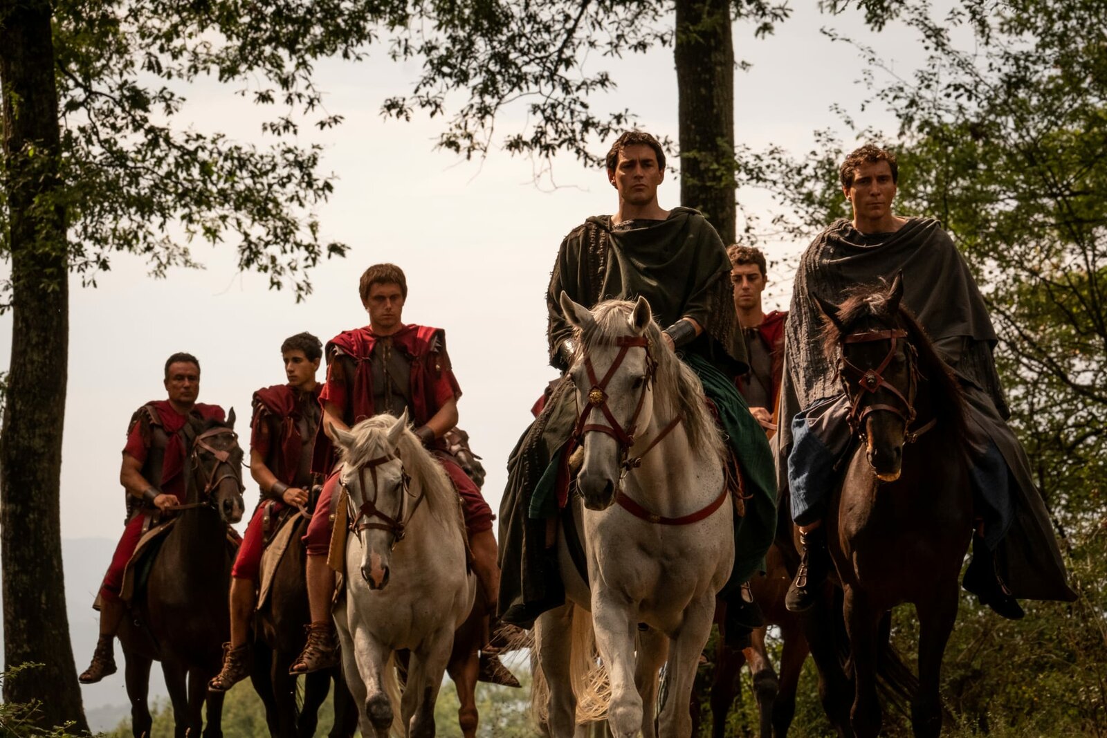 VerratVorne: Agrippa (Ben Batt, r.), Gaius (Matthew McNulty, 2.v.r.)Bild: © Philippe Antonello / Sky UK / Die Verwendung ist nur bei redaktioneller Berichterstattung im Rahmen einer Programmankündigung ab 2 Monate vor der ersten Auss / © 2021 Fifty Fathoms and Tiger Aspect Pr