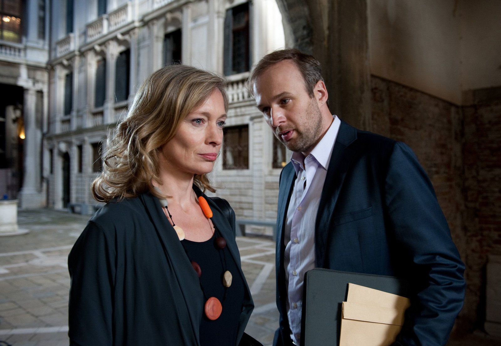 Lasset die Kinder zu mir kommen. . ARD DONNA LEON - LASSET DIE KINDER ZU MIR KOMMEN, Deutschland 2010, Regie Sigi Rothemund, am Donnerstag (07.10.10) um 20:15 Uhr im Ersten. Commissario Brunetti (Uwe Kockisch) und Signorina Elettra (Annett Renneberg) geben sich zu Ermittlungszwecken als Paar aus. © ARD Degeto/Martin Menke - honorarfrei - Verwendung gem‰fl der AGB im engen inhaltlichen, redaktionellen Zusammenhang mit o. g. Sendung bei Nennung Bild: "ARD Degeto/Martin Menke" (S 2), Programmplanung und Presse (069) 1509-334 oder -335, e-mail degeto-presse@degeto.de.Bild: © Das Erste