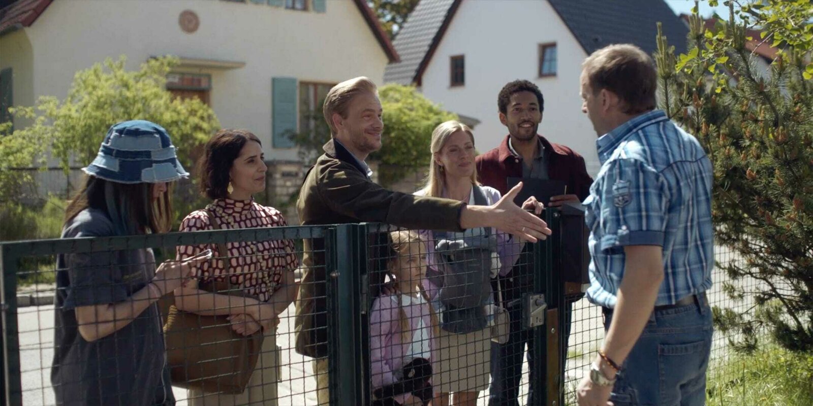 ChancengleichheitZwei Familien bewerben sich um eine Doppelhaushälfte. Andi Knuppe (Milan Peschel, r.) lädt zur Hausbesichtigung.Bild: © ZDF und Antonio Paladino.