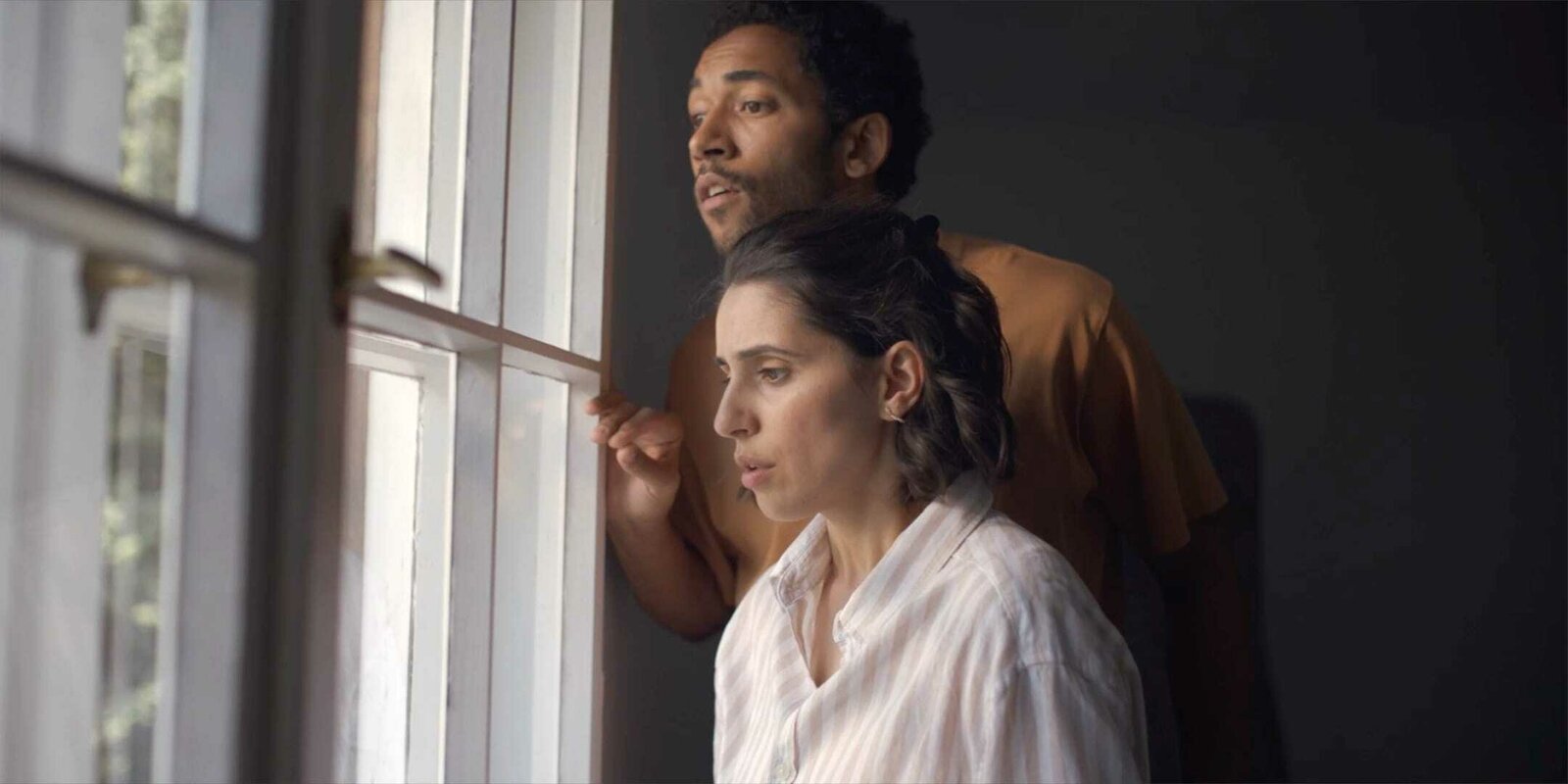 Die KameraTheo (Benito Bause) und Mari (Maryam Zaree) entdecken einen ungebetenen Gast hinter dem Vorhang.Bild: © ZDF und Tilo Hauke.