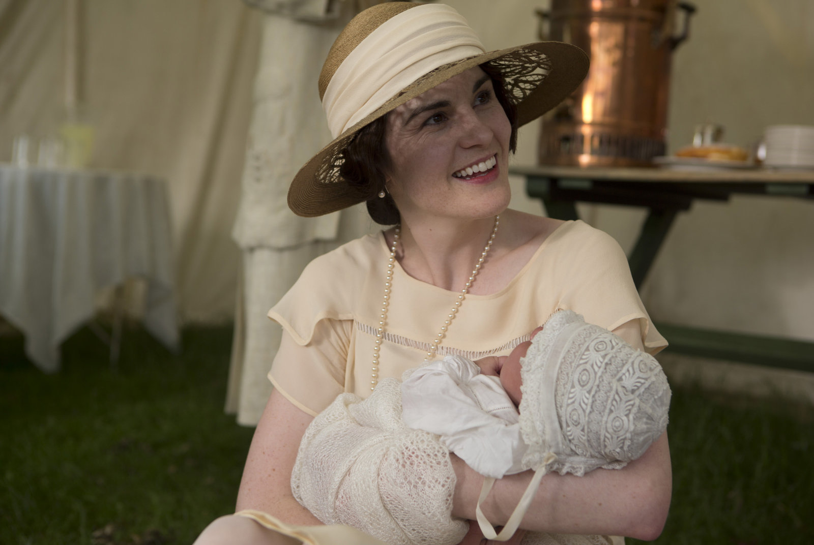IntrigenSchon mal für eigenen Nachwuchs üben: Lady Mary (Michelle Dockery) mit ihrer kleinen Nichte, der Tochter ihrer verstorbenen Schwester Sybil.Bild: © ZDF und NBC Universal
