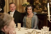 Das VerbrechenLord Robert (Hugh Bonneville) unterhält beim Dinner seinen prominenten Gast, die berühmte Opernsängerin Dame Nelly Melba (Kiri Te Kanawa). Im Vordergrund Maggie Smith als Lady Violet, Roberts Mutter.Bild: © ZDF und NBC Universal