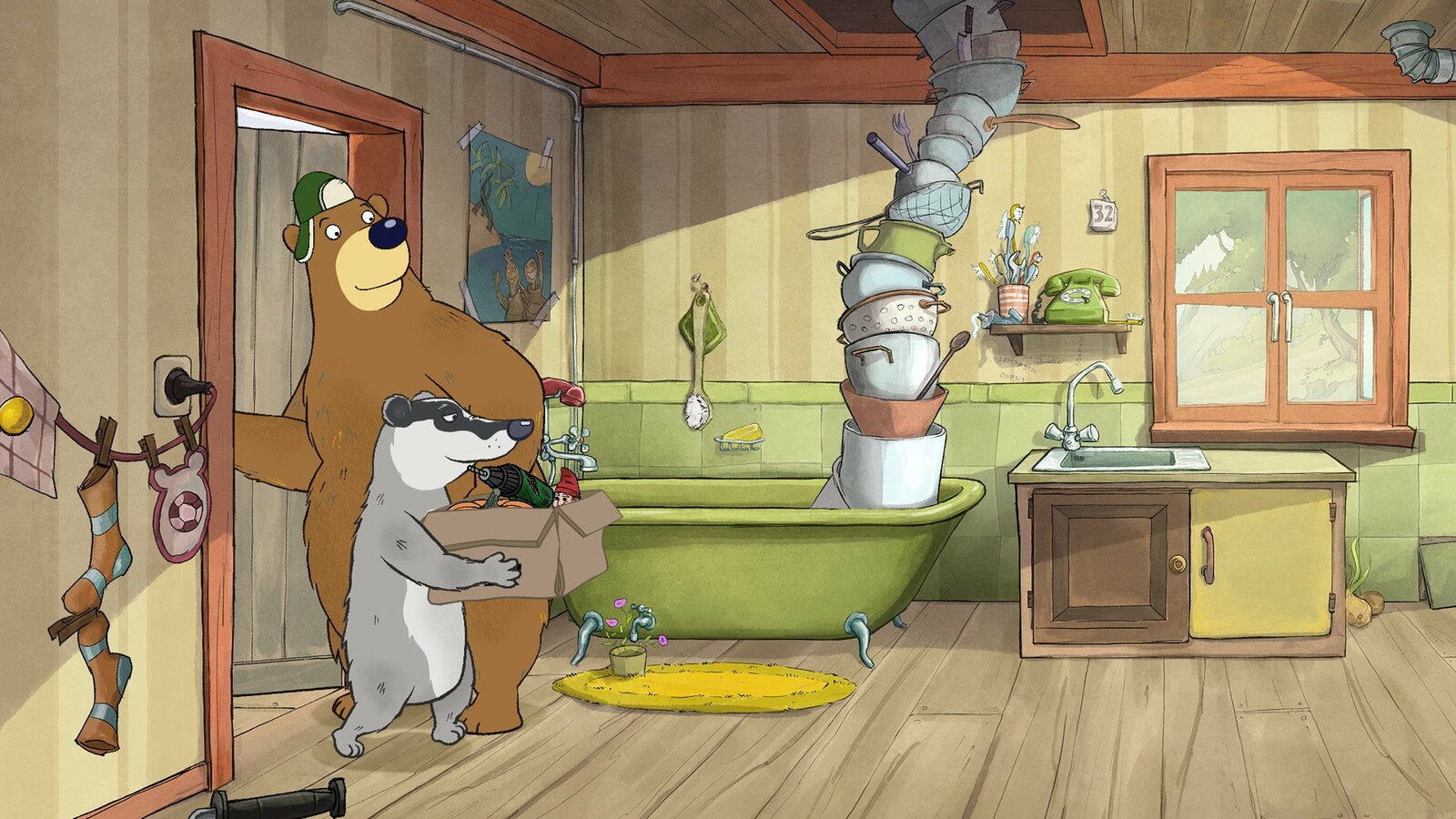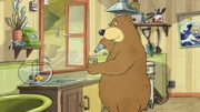 Dr. Brumm geht einkaufenDr. Brumm kommt mit Dachs vom Einkaufen zurück.Bild: © rbb/WunderWerk/TRIKK 17