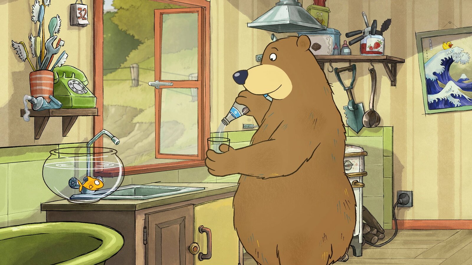 Dr. Brumm hat SchluckaufDr. Brumm schenkt sich einen Schluck Wasser ein.Bild: © rbb/WunderWerk/TRIKK 17