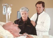 HerzensdingeDr. Stefan Frank (Sigmar Solbach, re.) bringt Martha (Erna Wassmer) zu Louis (Alfons Biber) ans Krankenbett. Er hat einen Herzinfarkt erlitten.Bild: © TVNOW