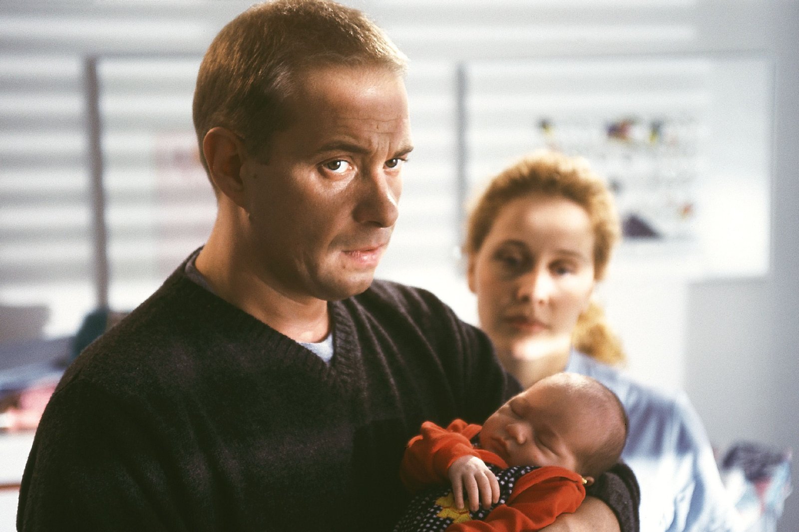 Die EröffnungDer Architekt Michael Gürtler (Thomas Balou Martin) hält zum ersten Mal sein Kind im Arm. Schwester Sonja (Patricia Lueger) beobachtet die Szene.Bild: © RTLplus / Elke Werner