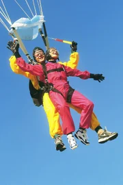 Der TodessprungIrene Kadenbach (Claudia Wenzel) freut sich über ihren Tandemsprung mit Lehrer Friedemann Deffner (Michael Schiller). Sie hat den Fallschirmsprung von den Mitarbeitern der Waldner-Klinik geschenkt bekommen.Bild: © RTLplus / Elke Werner