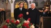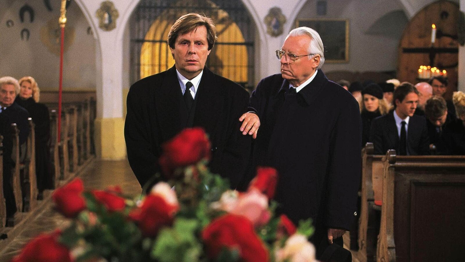 Dr. Frank und die neue ÄrztinDr. Stefan Frank (Sigmar Solbach, l.) und sein Vater Eberhard (Hans Caninenberg) bei der Beerdigung von Eva.Bild: © MG RTL D / Elke Werner