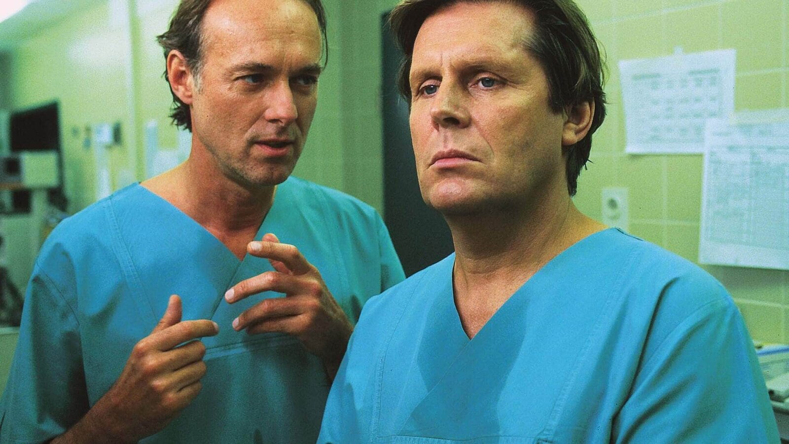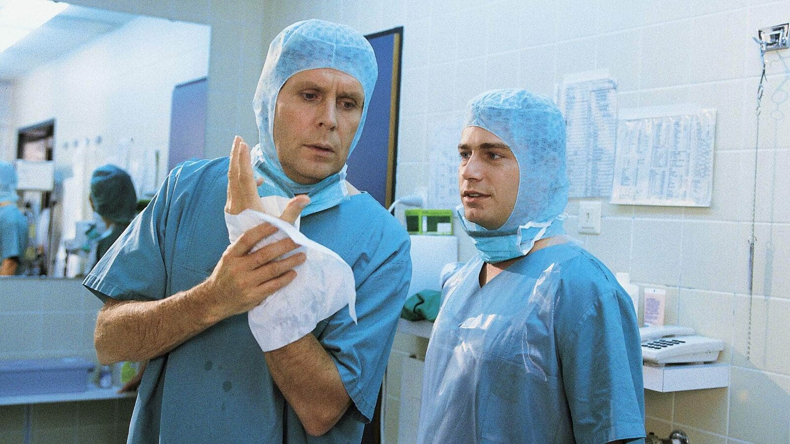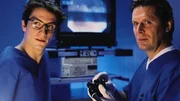Stunden der AngstDr. Stefan Frank (Sigmar Solbach, li.) und Assistenzarzt Dr. Peter Stein (Zacharias Preen) haben gerade die Schusswunde von Fredi operiert.Bild: © MG RTL D / Elke Werner