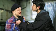 Auf Messers SchneideMit Gewalt schüchtert Tobias (Oliver Elias, r.) ein Bandenmitglied (Lukas Miko) ein.Bild: © MG RTL D / Elke Werner