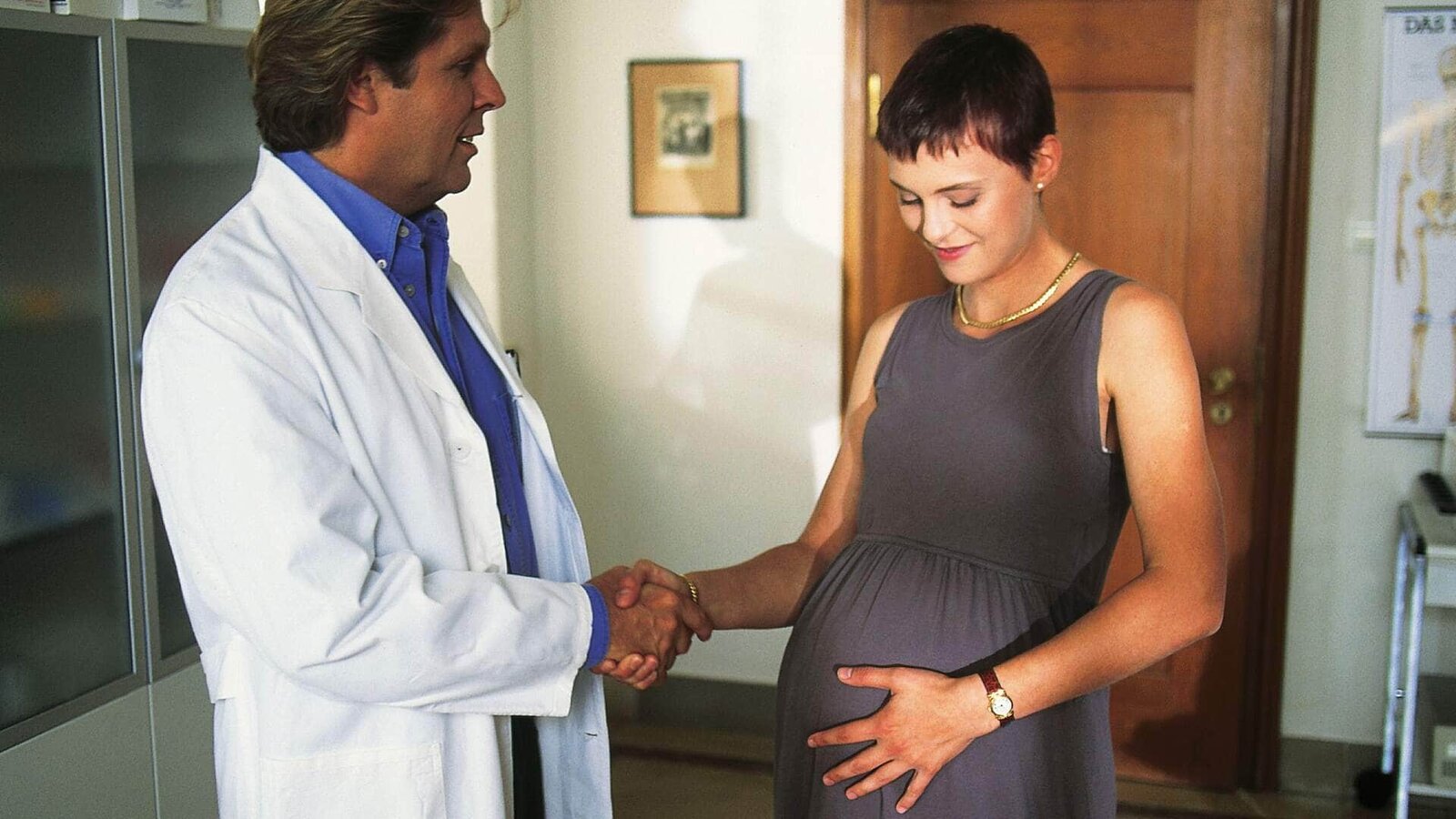 Ein fataler IrrtumDr. Stefan Frank (Sigmar Solbach) untersucht die hochschwangere Tierärztin Dr. Susanne Berger (Daniela Strietzel). Sie erwartet Zwillinge.Bild: © MG RTL D / Elke Werner