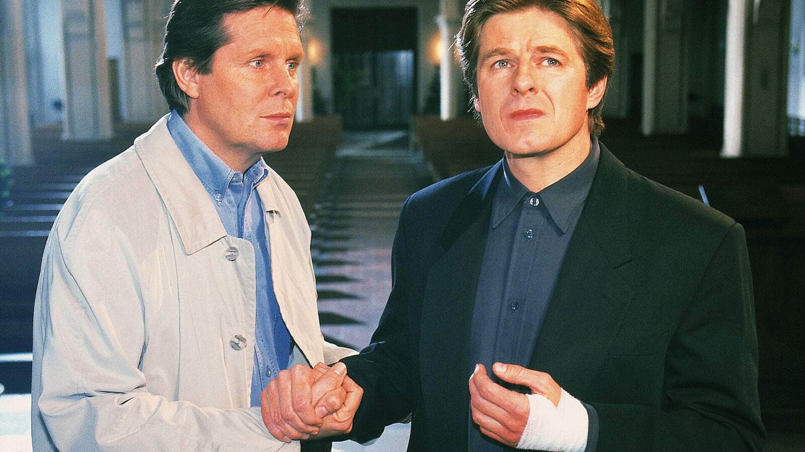 Und führe mich nicht in VersuchungDr. Stefan Frank (Sigmar Solbach, l.) spricht mit dem katholischen Pfarrer Heinrich Schering (Horst Kummeth) über sein Kind.Bild: © MG RTL D / Elke Werner