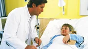 Vanessa im FlammenkranzDr. Stefan Frank (Sigmar Solbach) besucht die kleine Lina (Natalie Uhlig) in der Klinik.Bild: © MG RTL / Elke Werner