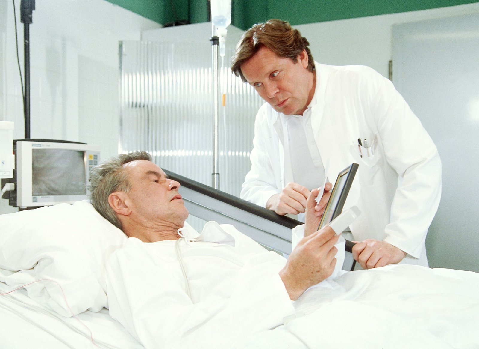 Das Schweigen der LiebeDr. Stefan Frank (Sigmar Solbach) behandelt in der Waldner-Klinik Herrn von Braun (Horst Buchholz).Bild: © RTLplus