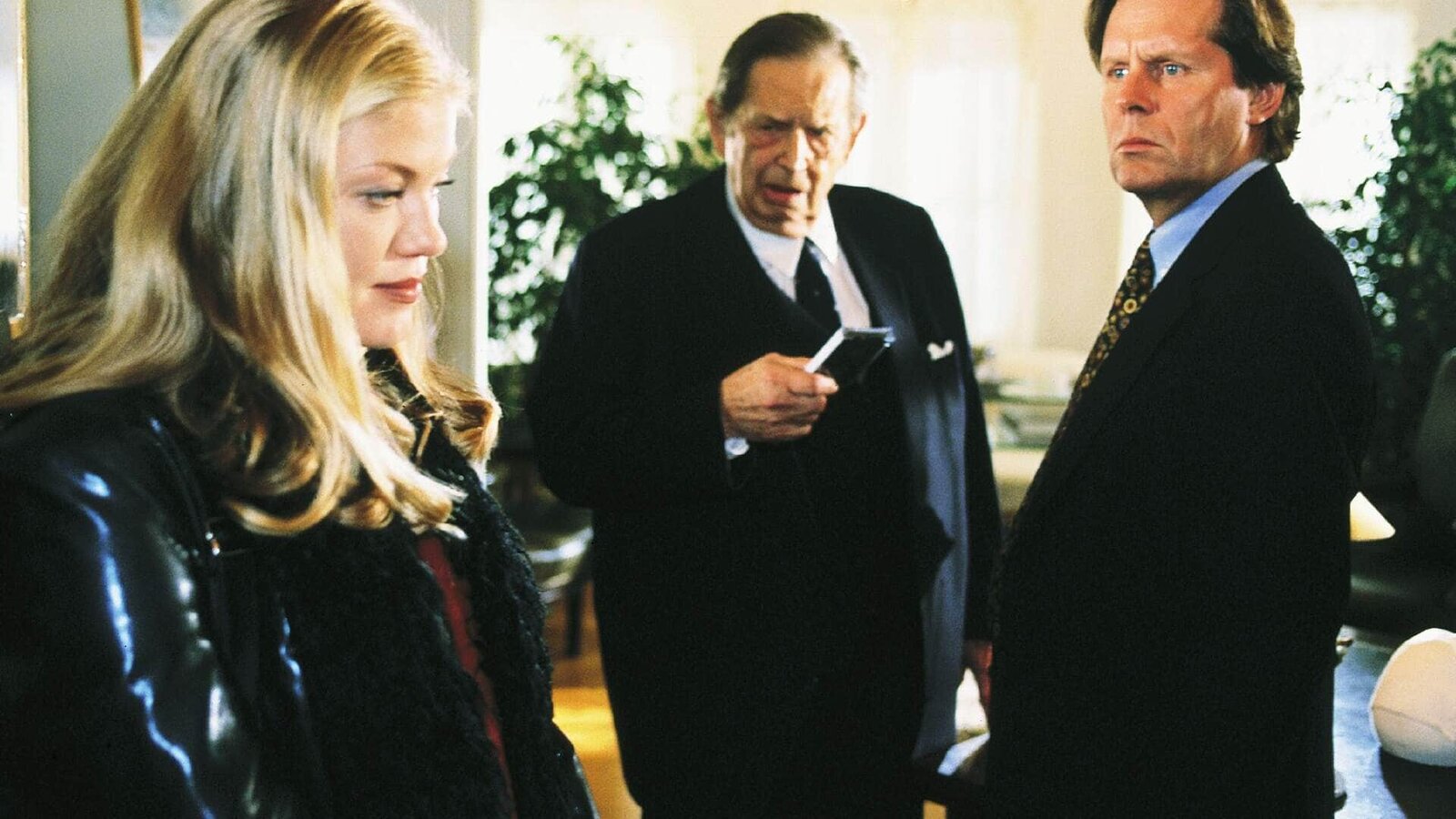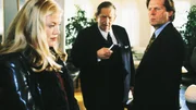 AbgestürztDer Notar (Georg Marischka, M.) stellt Dr. Stefan Frank (Sigmar Solbach, r.) bei der Testaments-Eröffnung seine Halbschwester Laura (Cecilia Kunz) vor. Sie erbt die Hälfte der Villa Frank...Bild: © MG RTL D / Elke Werner